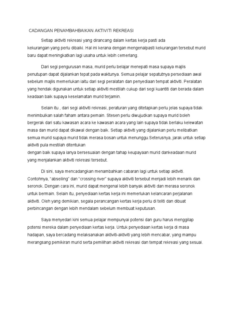 Cadangan Penambahbaikan Aktiviti Rekreasi