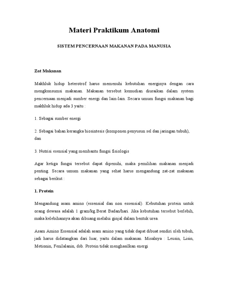 Materi Praktikum Anatomi Sistem Pencernaan Makanan Pada Manusia