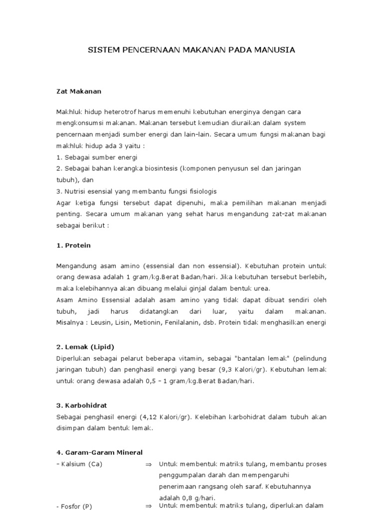 Sistem Pencernaan Makanan Doc Document