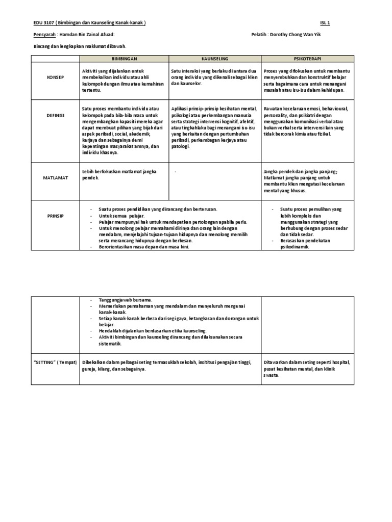 Perbezaan Antara Bimbingan Kaunseling Dan Psikoterapi