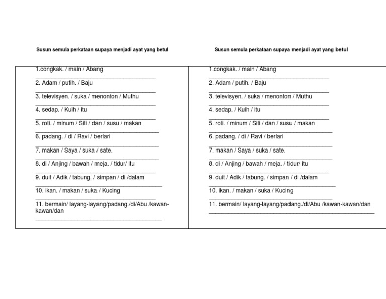 Bina Ayat Tatabahasa Latihan Bahasa Melayu Tahun 1