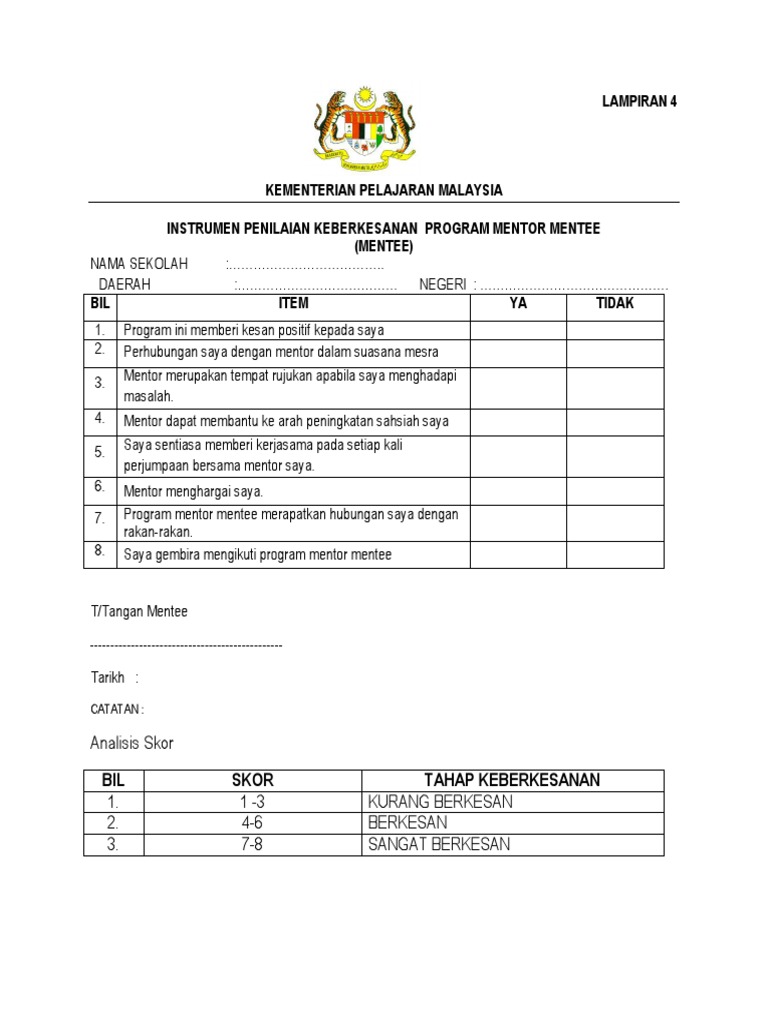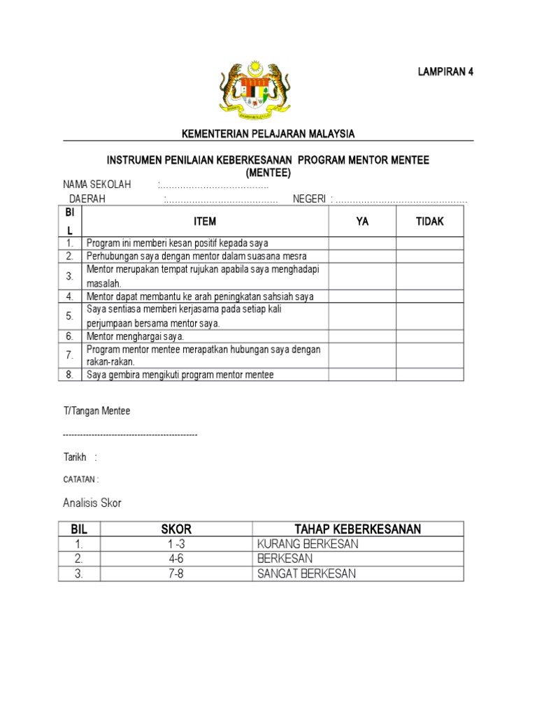 Borang Penilaian Mentor Mentee Docx