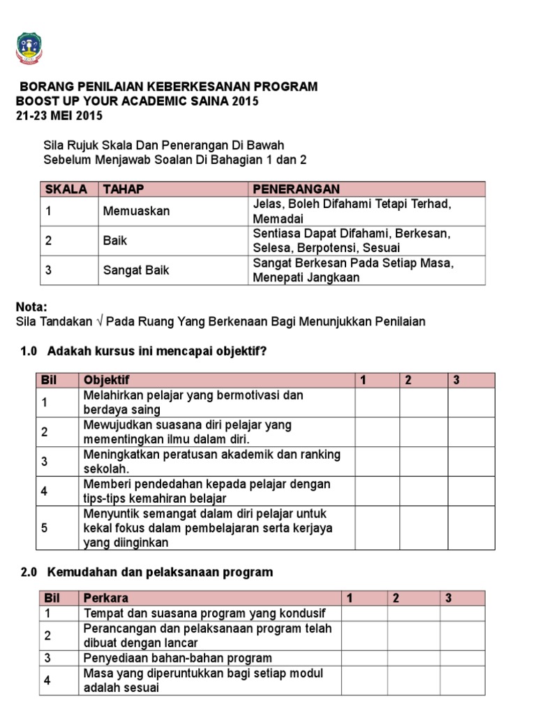 Contoh Borang Penilaian Program