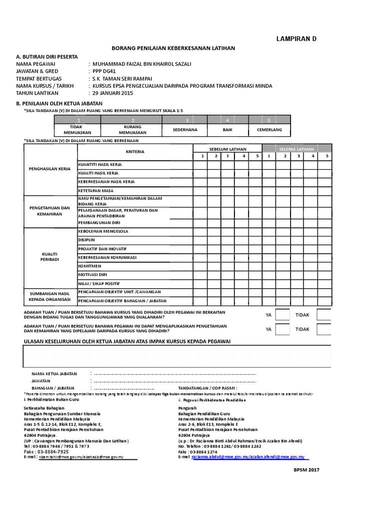 Lampiran D Borang Keberkesanan Latihan Doc