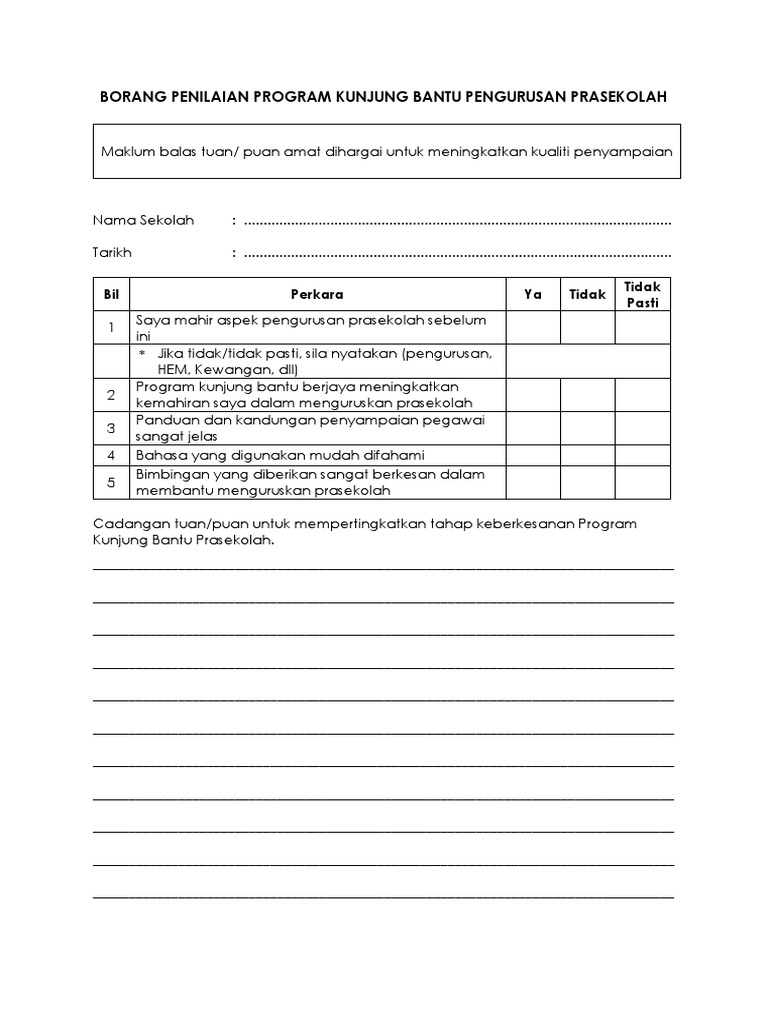 Borang Penilaian Program Kunjung Bantu Pengurusan Prasekolah