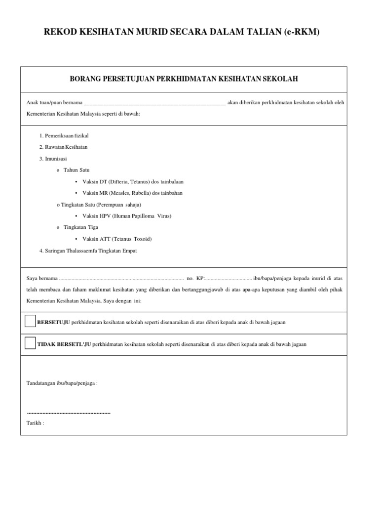 Download Borang Persetujuan Perkhidmatan Kesihatan Dan Imunisasi