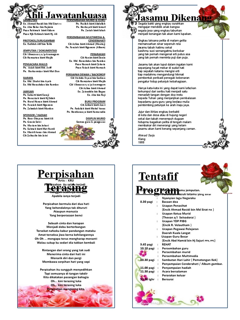 Contoh Buku Program Majlis Perpisahan Contoh Lem
