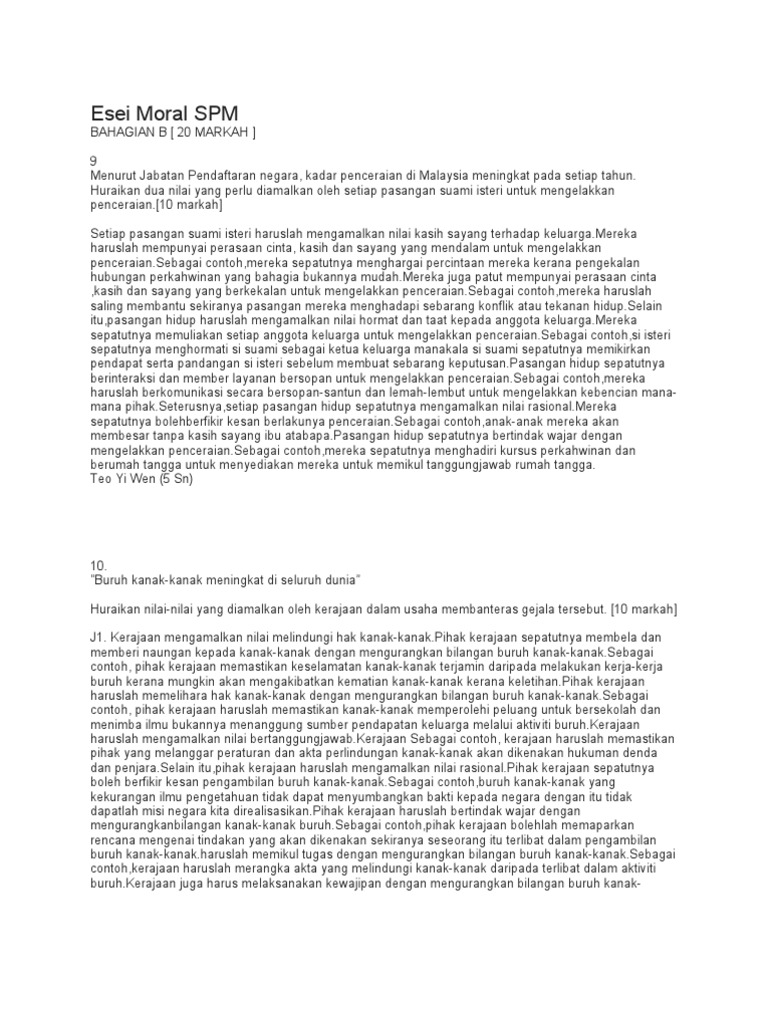 Contoh Jawapan Soalan Esei Moral Spm Kerja Kosl