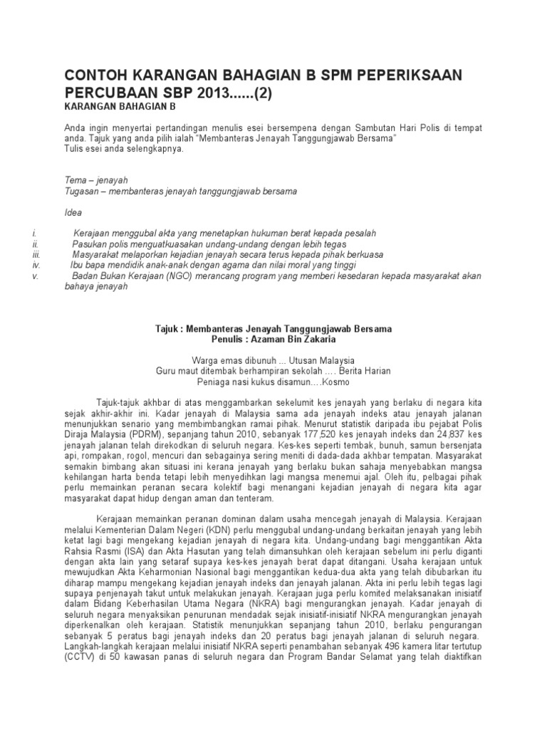 Contoh Karangan Bahagian B Spm Peperiksaan Percubaan Sbp 2013 2
