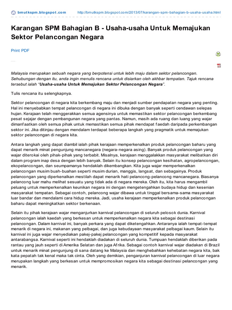 Bmutkspm Blogspot Com Karangan Spm Bahagian B Usahausaha Untuk Memajukan Sektor Pelancongan Negara