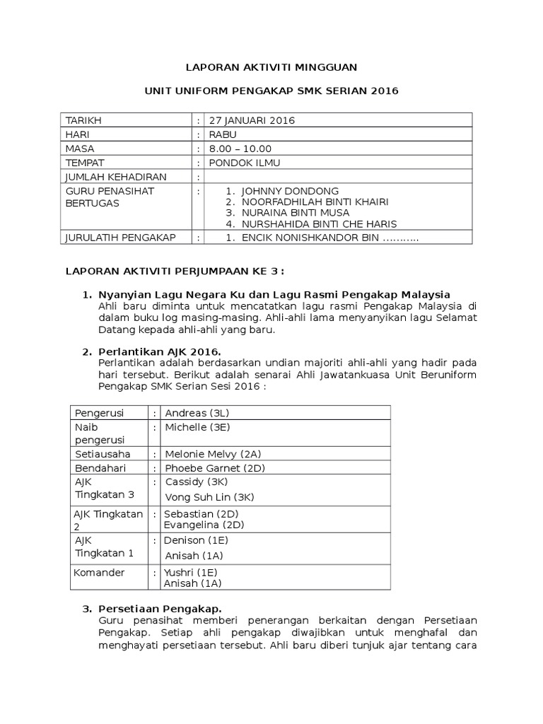 Doc Contoh Penulisan Laporan Tahunan Unit Kokurikulum Fony Nuli Academia Edu