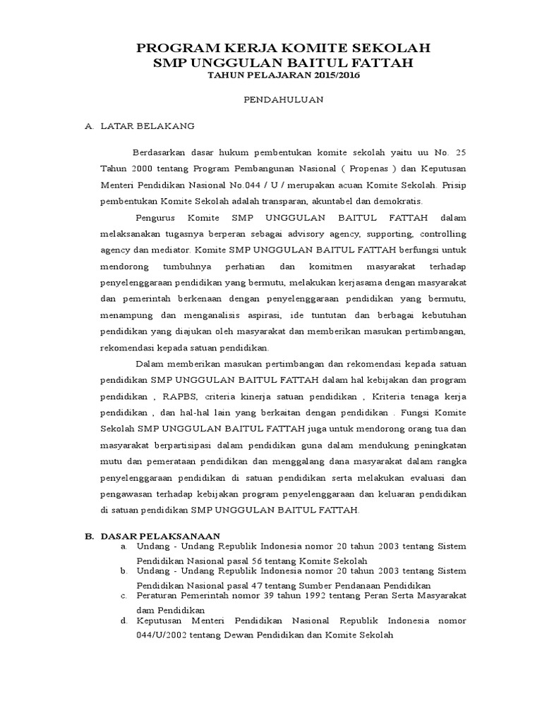 Program Kerja Komite Sekolah Smp Bf 2015