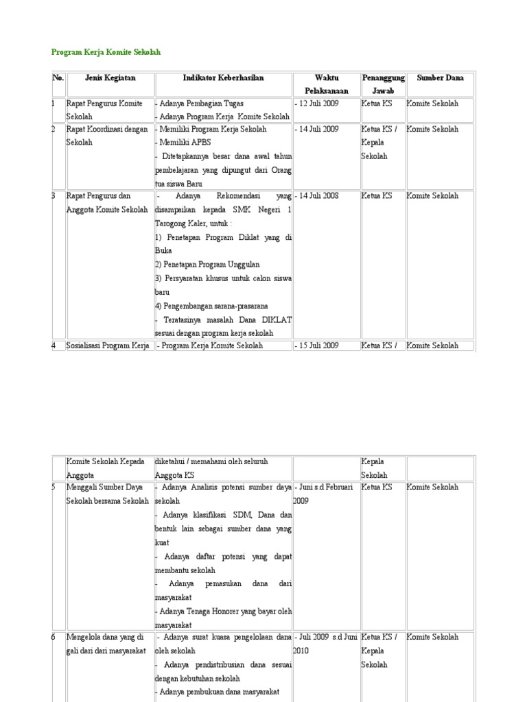 Contoh Program Kerja Komite Sekolah Www Forumpendidikan Com