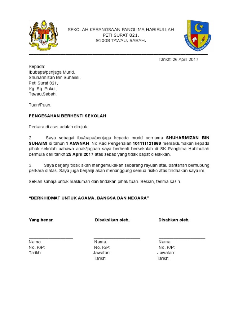Contoh Surat Berhenti Sekolah Pdf