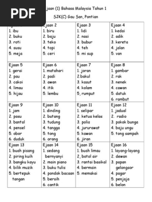 Ejaan Bahasa Malaysia Tahun 1 Docx