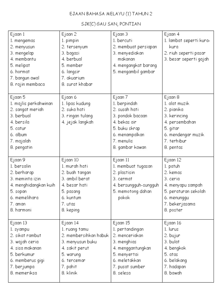 Ejaan Bm Tahun 2 Semakan Kssr