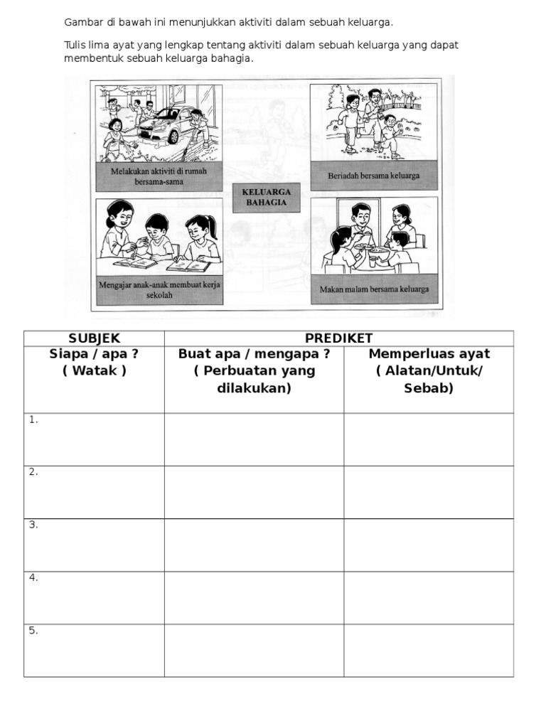 Taman tema ini akan membawa anda ke pengembaraan yang penuh dengan keseronokan bersama sama keluarga dan rakan rakan terletak di antara kawasan rimbunan kehijauan dan batu kapur lost world of tambun menyediakan pelbagai aktiviti yang menarik seperti petating zoo tin valley team building park dan kolam air panas. Kemahiran membina ayat merupakan elemen penting yang perlu dikuasai murid bermula dari membina ayat pendek ayat panjang sehinggalah boleh membina karangan. Ibu sedang mencantas reranting pokok bunga. Contoh gambar makan bersama keluarga.