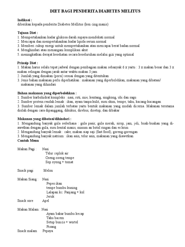 Doc Daftar Menu Makanan Sehat Untuk Penderita Diabetes Sri Puji Wasono Academia Edu
