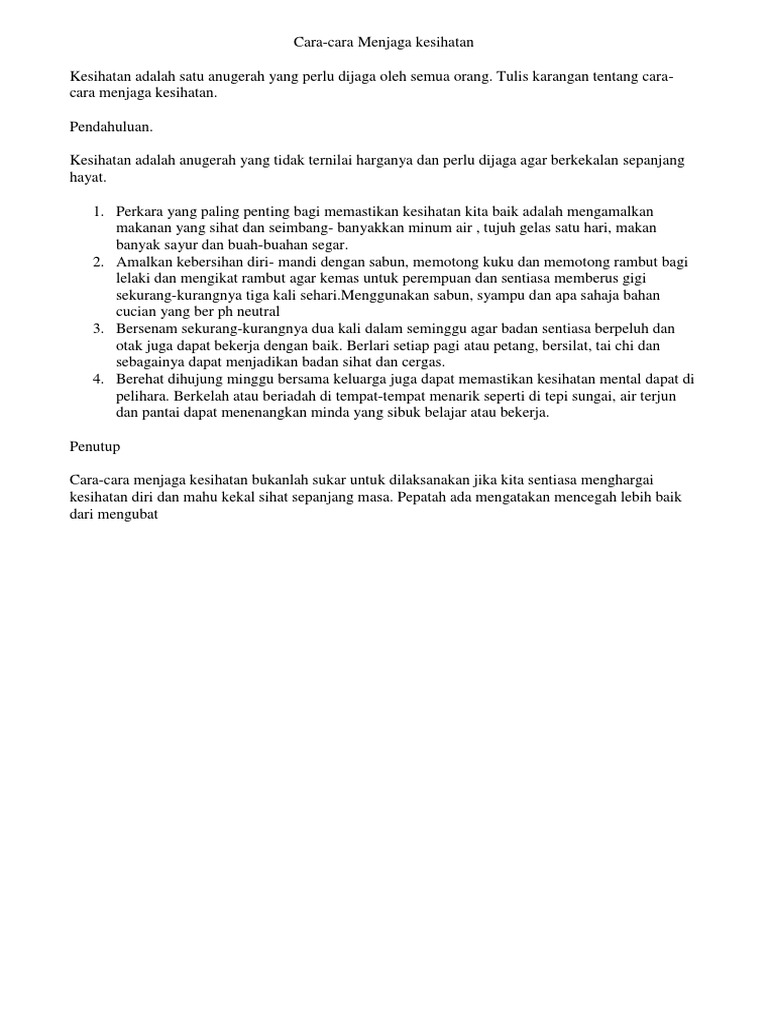 Karangan Fakta Cara Cara Menjaga Kesihatan Diri Cute766