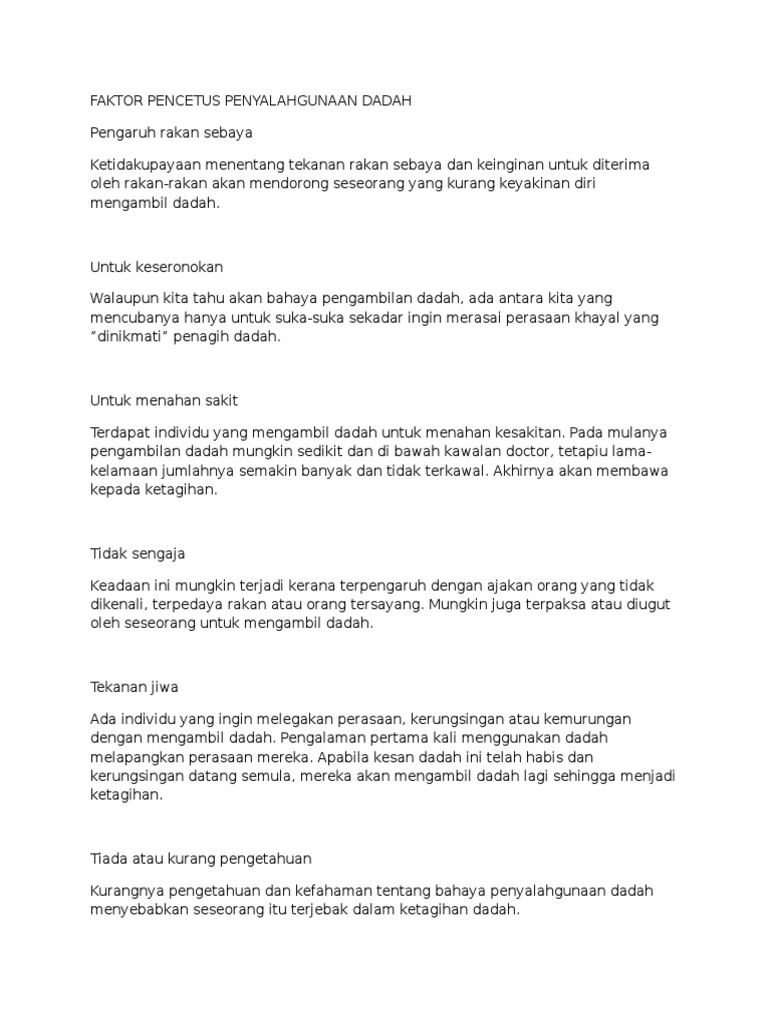 Doc 2 0 Faktor Faktor Penyalahgunaan Dadah Miera Wahib Academia Edu