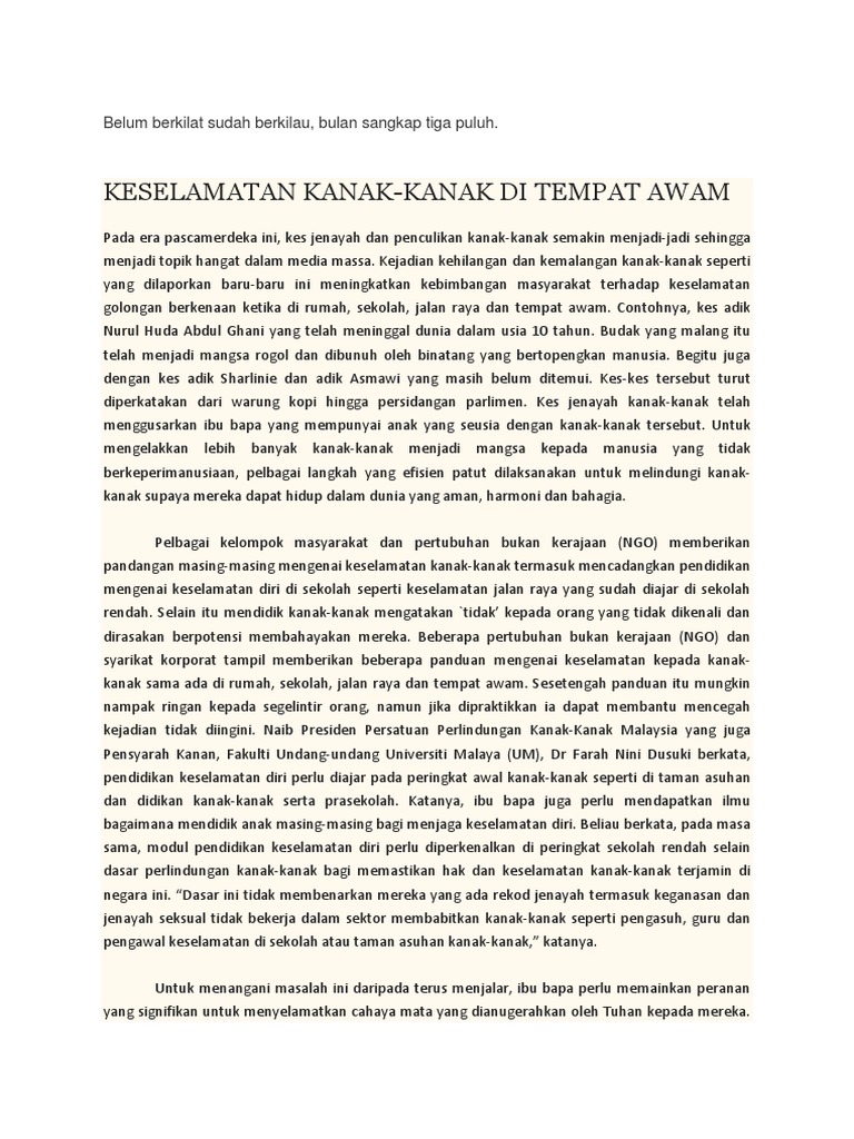 Keselamatan Kanak Kanak Tanggungjawab Bersama Karangan