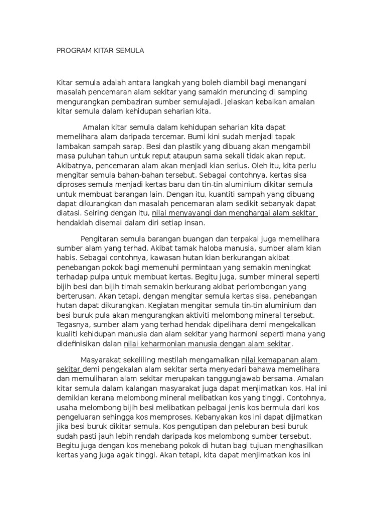 Contoh Karangan Faedah Program Kitar Semula Aussieturki S Diary