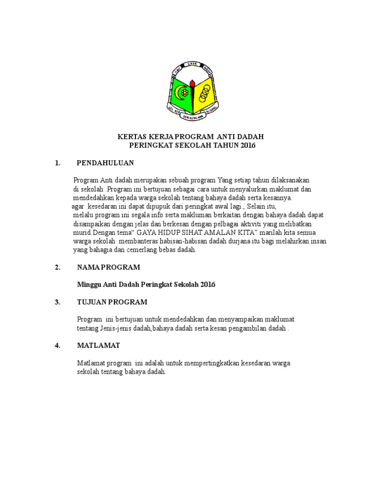 Doc 46021340 Kertas Kerja Minggu Anti Dadah Sekolah Kebangsaan Ajis Kadir Academia Edu