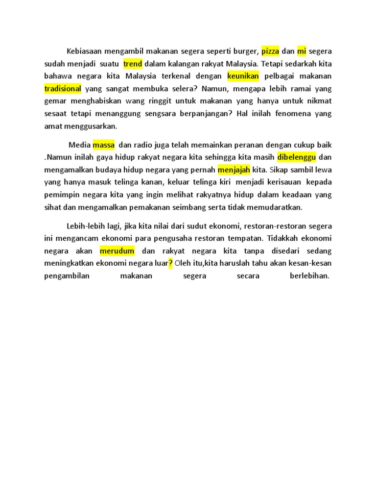 Karangan 4 Kesan Buruk Pengambilan Makanan Segera