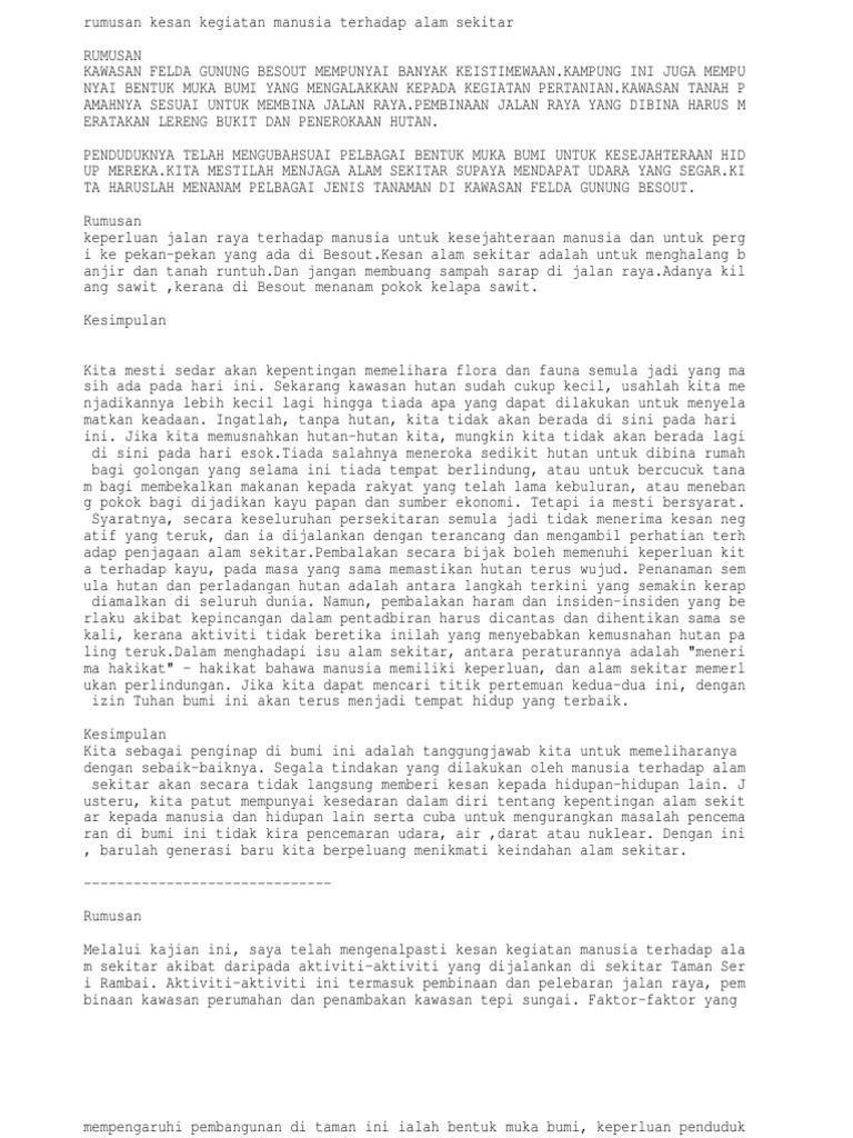 Contoh Karangan Kesan Pembangunan Terhadap Alam Sekitar