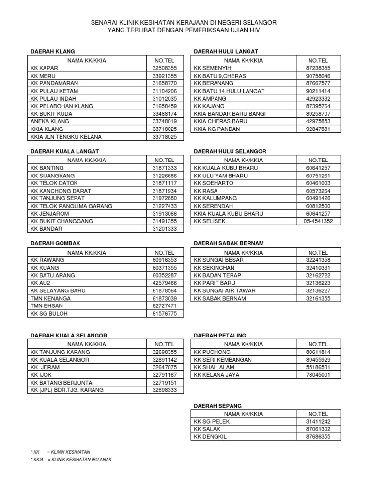 Klinik Kesihatan Kuala Lumpur Selangor Lokasi Servis Harga