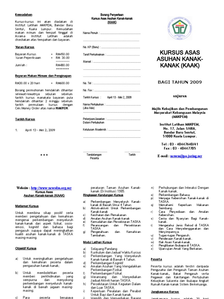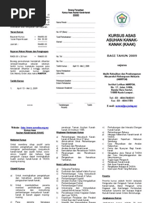 Borang Kursus Asas Asuhan Kanak Kanak Kaak