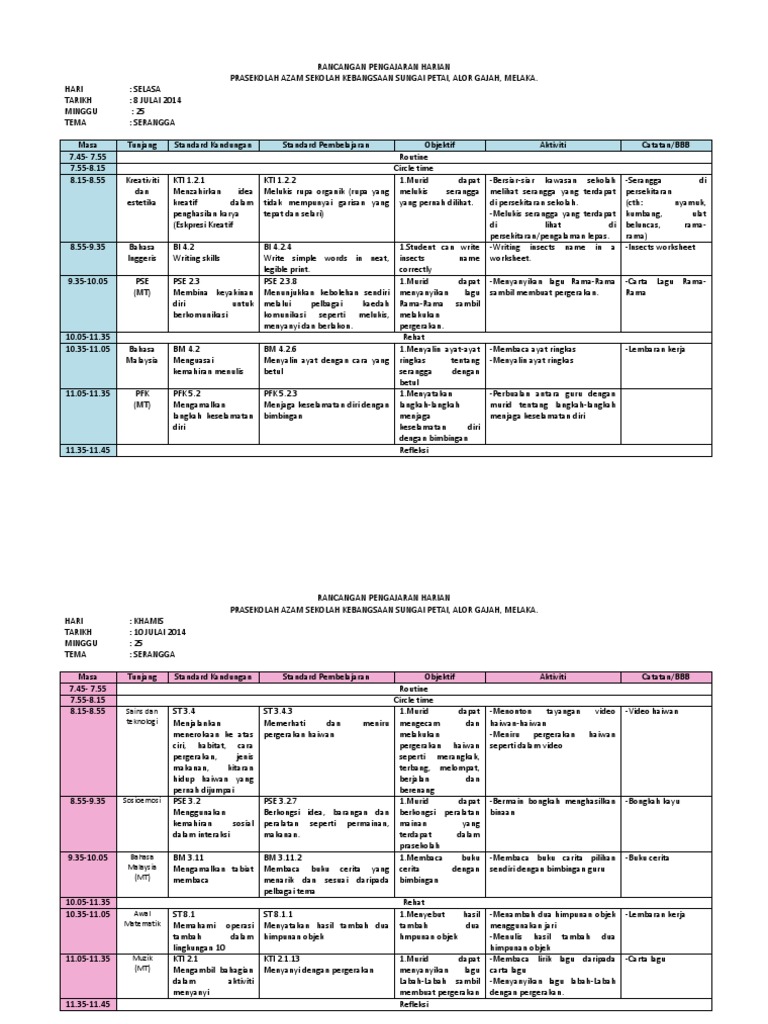 Langkah Pertama Diprasekolah Lembaran Kerja Tema Serangga