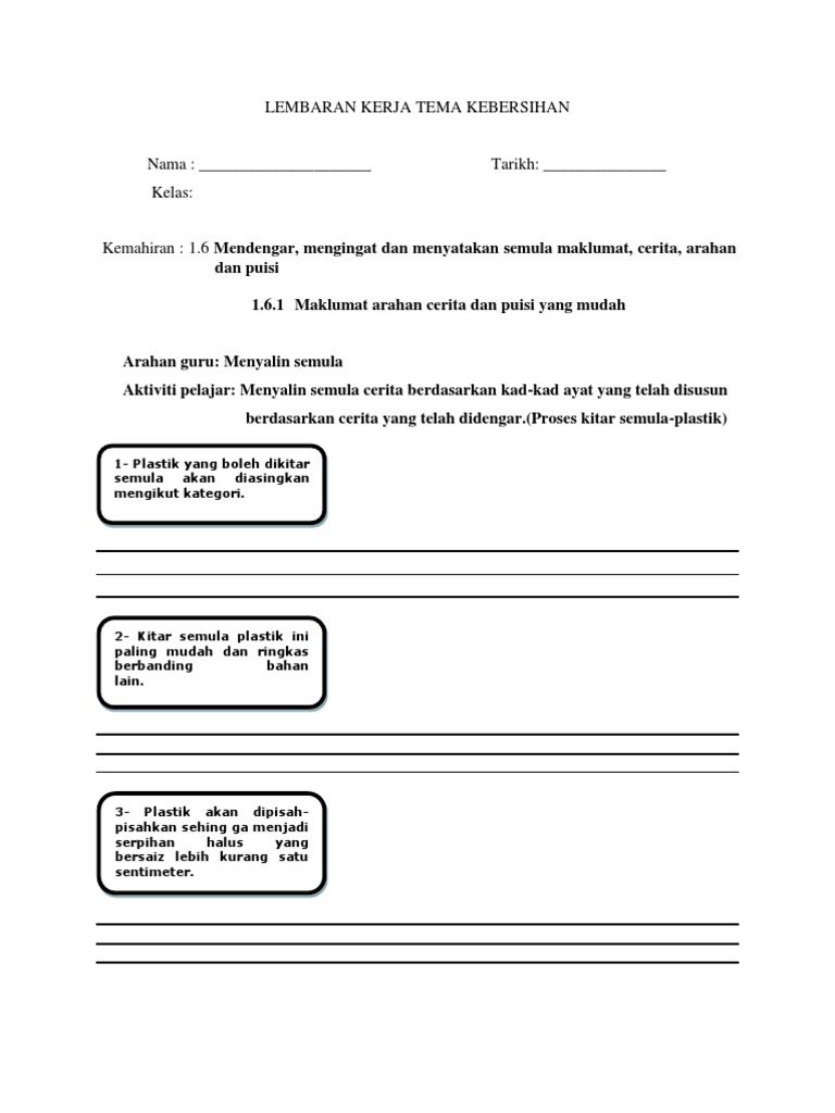 Lembaran Kerja Tema Kebersihan Download Docx