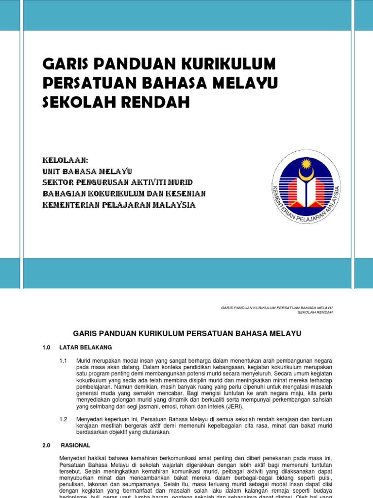 Garis Panduan Kurikulum Persatuan Bahasa Melayu Sekolah Rendah