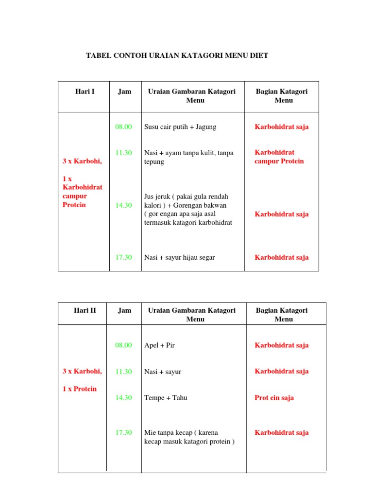 5 Hari Menu Diet Sehat Tanpa Nasi 1100 1400 Kalori 1 5 Hari Ke 1 Youtube