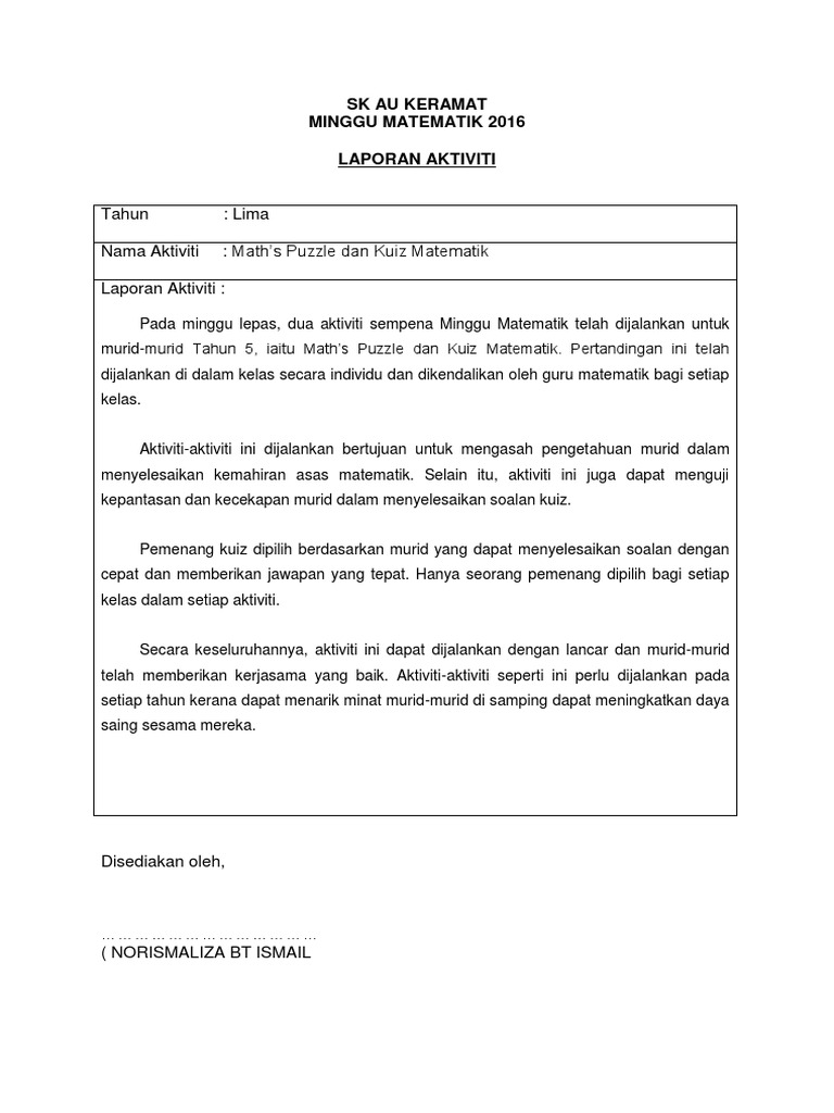 Tahun Lima Nama Aktiviti Math S Puzzle Dan Kuiz Matematik Laporan Aktiviti