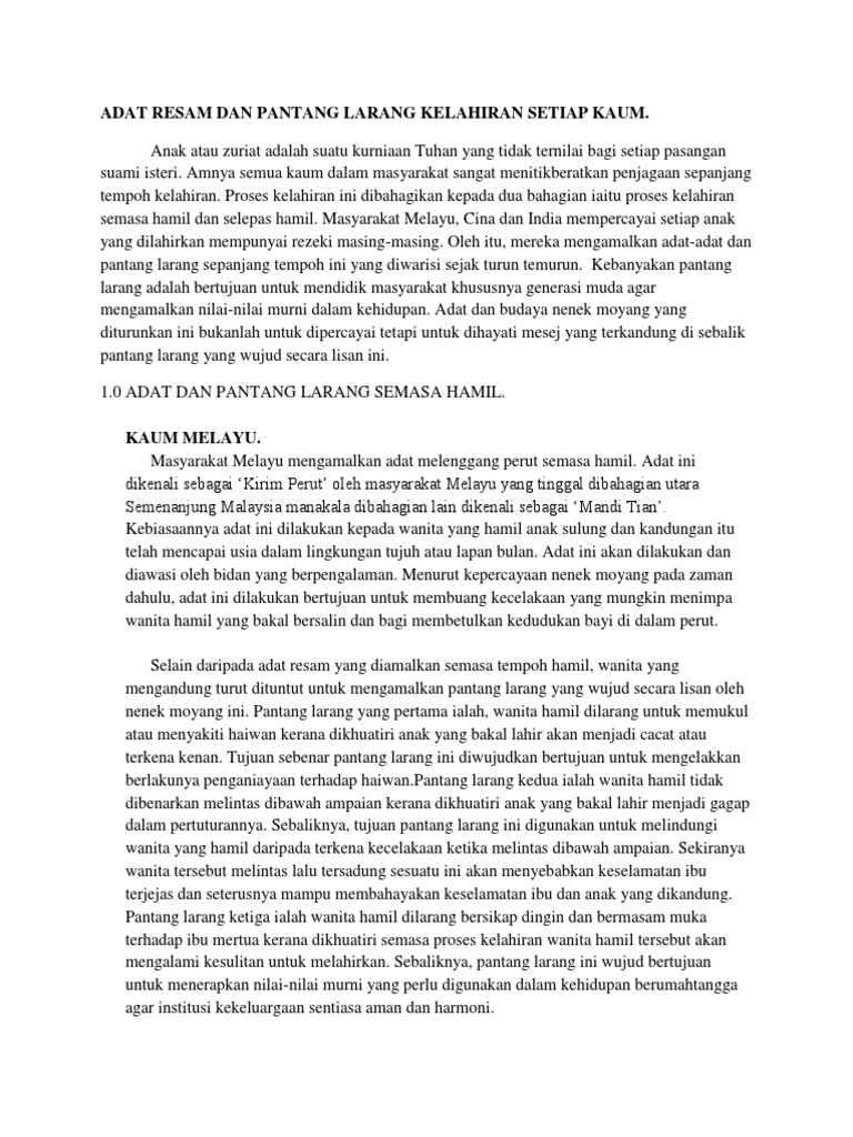 Adat Resam Dan Pantang Larang Kelahiran Setiap Kaum