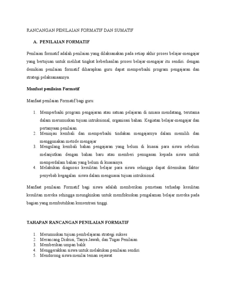 Doc Penilaian Formatif Dan Sumatif Sulfi Phie Academia Edu