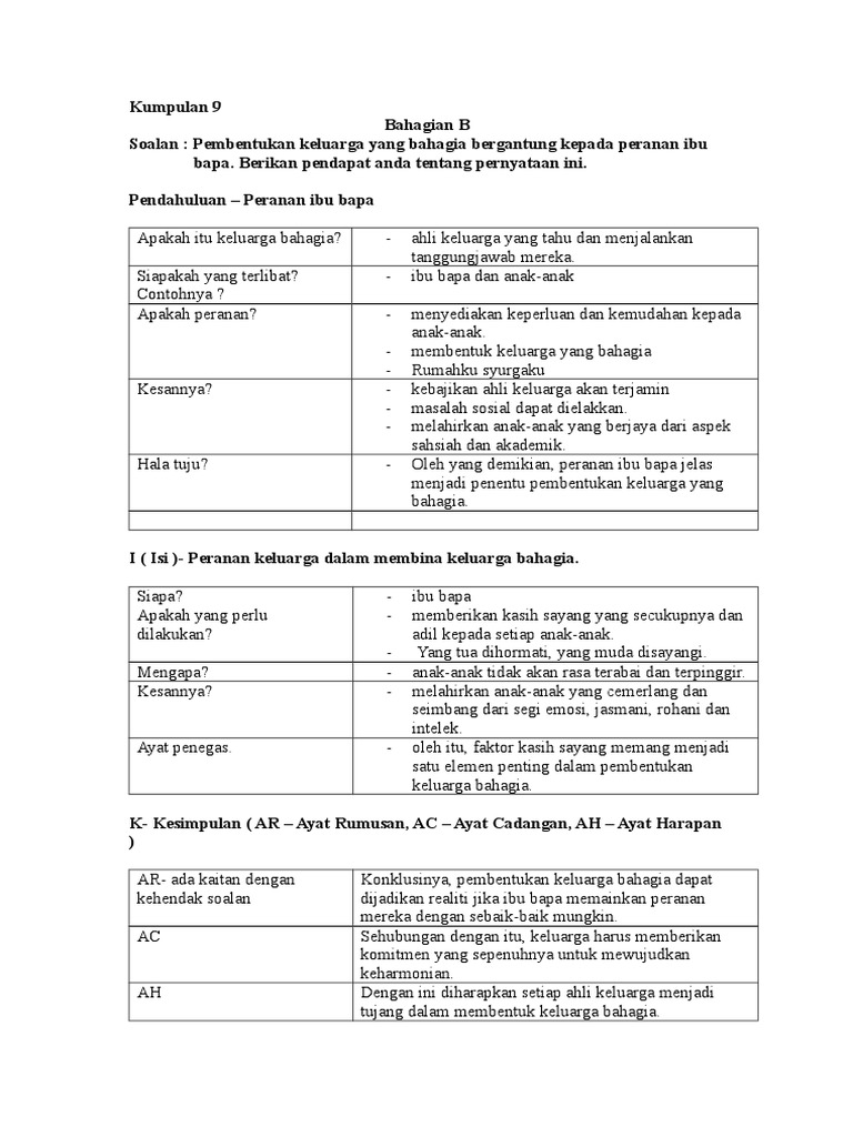 Karangan Peranan Ahli Keluarga Dalam Membentuk Keluarga Bahagia