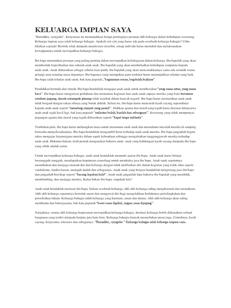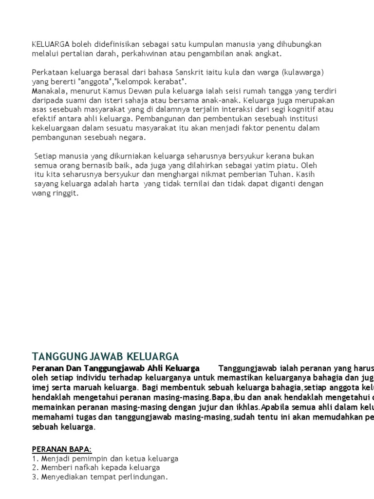 Karangan Peranan Ahli Keluarga Dalam Membentuk Keluarga Bahagia