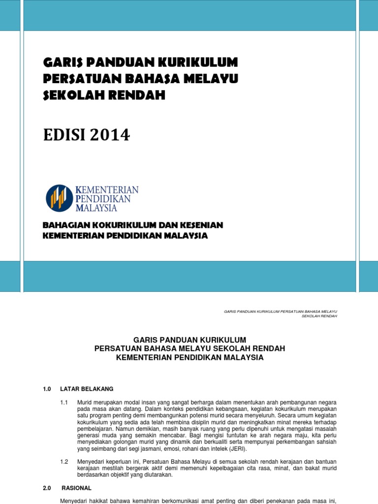 Garis Panduan Kurikulum Persatuan Bahasa Melayu Sekolah Rendah