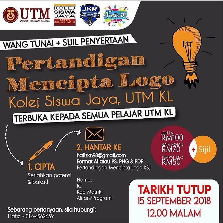 Jkmksj Twitterissa Perhatian Kepada Semua Pelajar Utm Kl Fiesta 18 Mengadakan Pertandingan Mencipta Logo Cara Caranya 1 Pelajar Hanya Perlu Mencipta Dengan Kreatifnya Lah Kan Kalau Nak Menang 2 Dan Hantar