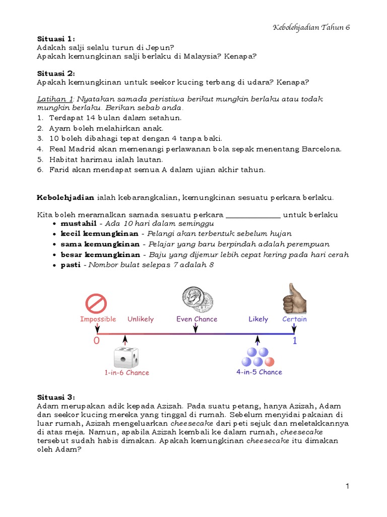 Latihan 1 Nyatakan Samada Peristiwa Berikut Mungkin Berlaku Atau Todak Mungkin Berlaku Berikan Sebab Anda