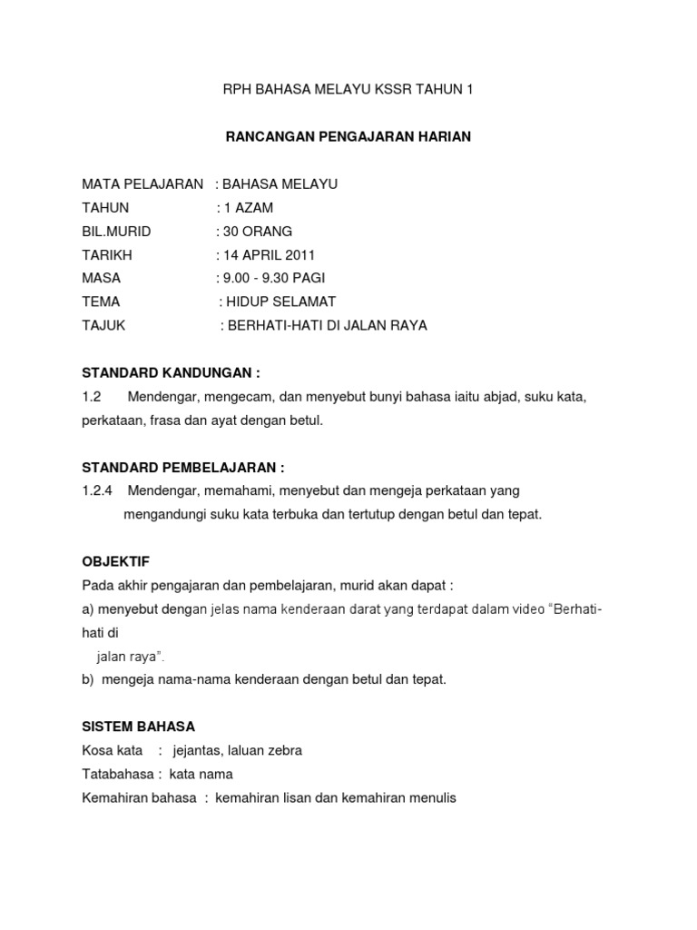 Bahasa Melayu Tahun 1 Suku Kata Terbuka Lessons Tes Teach