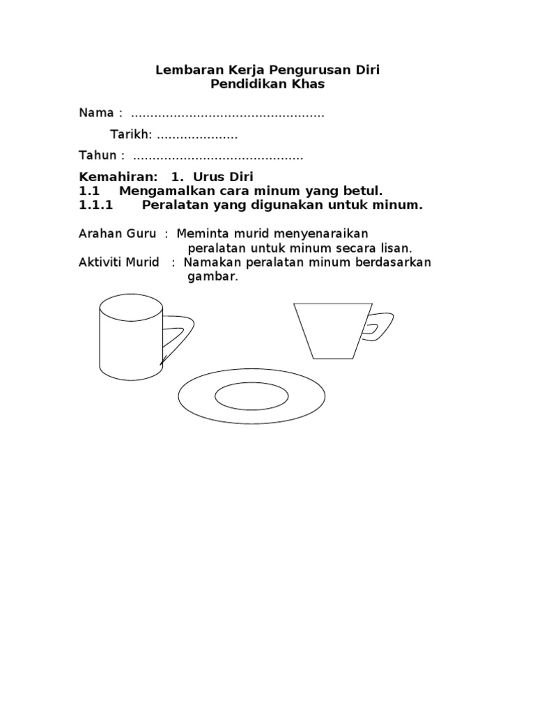 Tahun 1 Lembaran Kerja Pengurusan Diri Pendidikan Khas