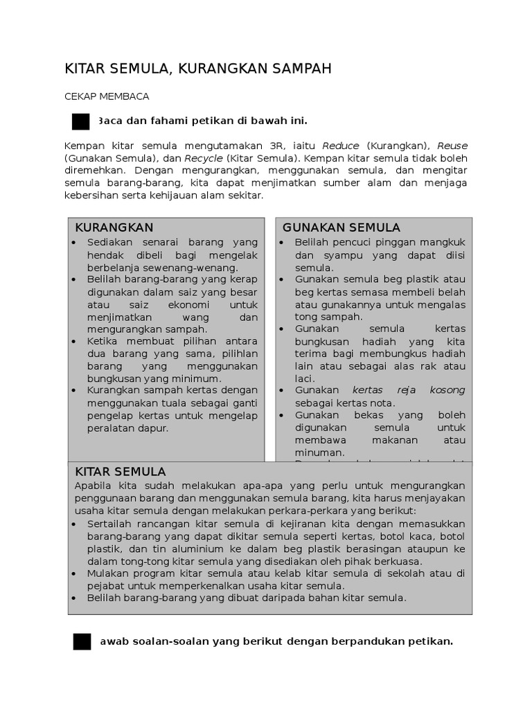 Bina Ayat Yang Mempunyai Kaitan Dengan Kitar Semula Docx