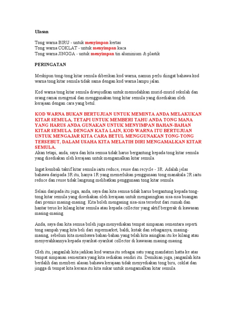 Warna Tong Sampah Kitar Semula Di Malaysia Rungus My