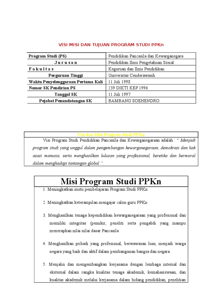 Visi Misi Dan Tujuan Program Studi Ppkn